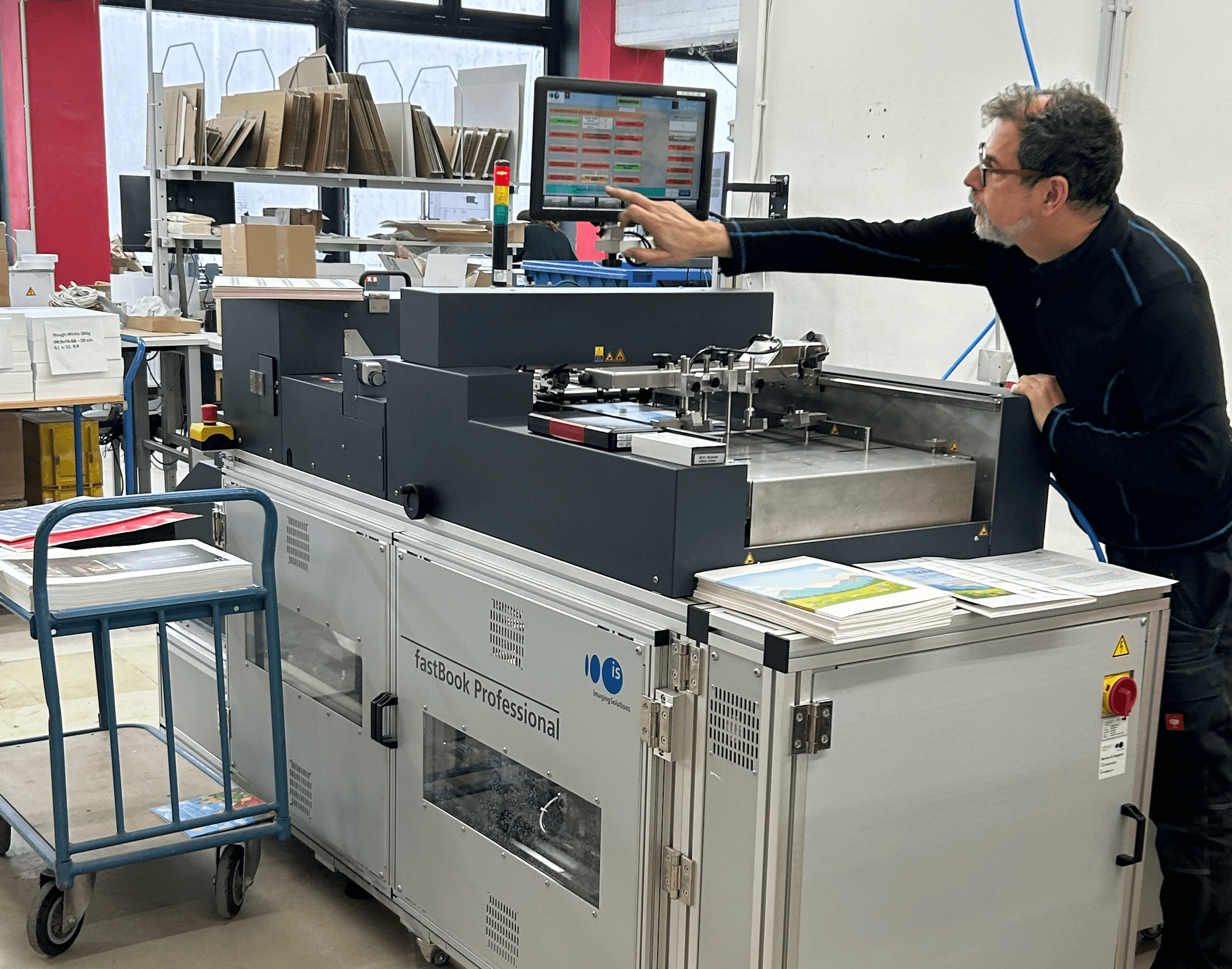 The collaboration between Imaging Solutions AG and Printfamily network companies Pinguin Druck and Dürmeyer demonstrates how specific requirements can be turned into a tailor-made, future-proof solution. The collaboration began pragmatically: Dürmeyer initially relied on used ISAG machines that were purchased directly from the market. However, it quickly became clear that a specific application - the lamination of business cards in combination with the production of LayFlat products - required significantly higher automation and process reliability.